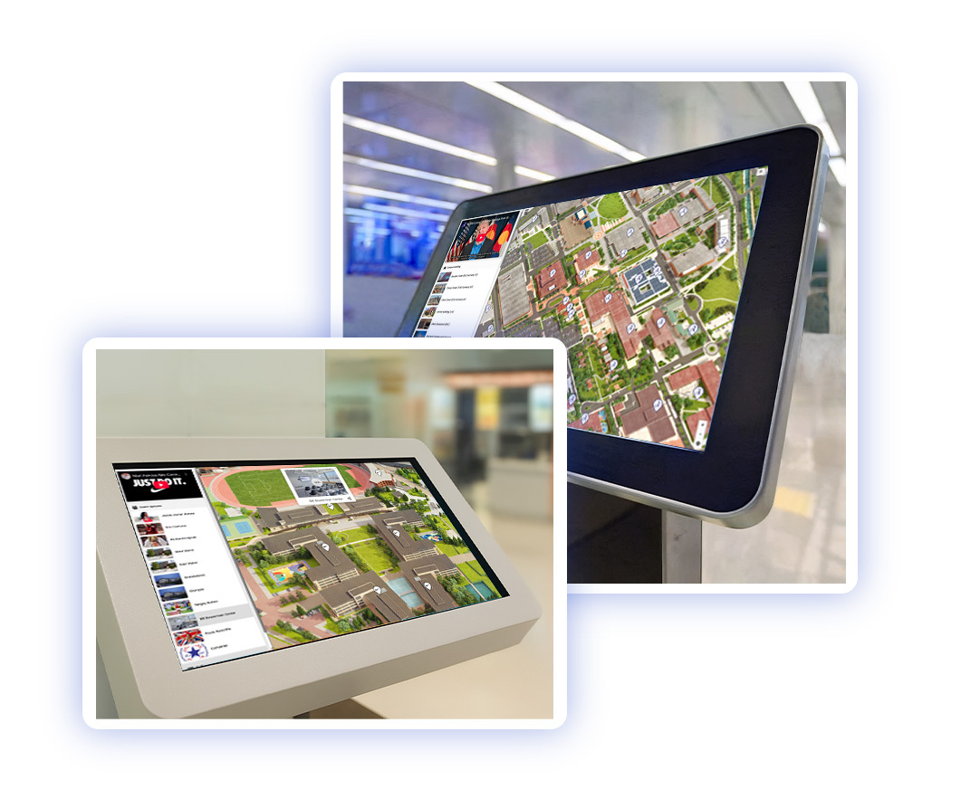 Visrez Interactive Maps can be displayed on touchscreens and kiosks to provide an intuitive, visually rich navigation experience for resorts, campuses or large scale venues. The same interactive map product used in your website can also be displayed on touchscreen devices at checkin or lobby or assembly points to help users find specific points of interest or to assist in wayfnding on site.